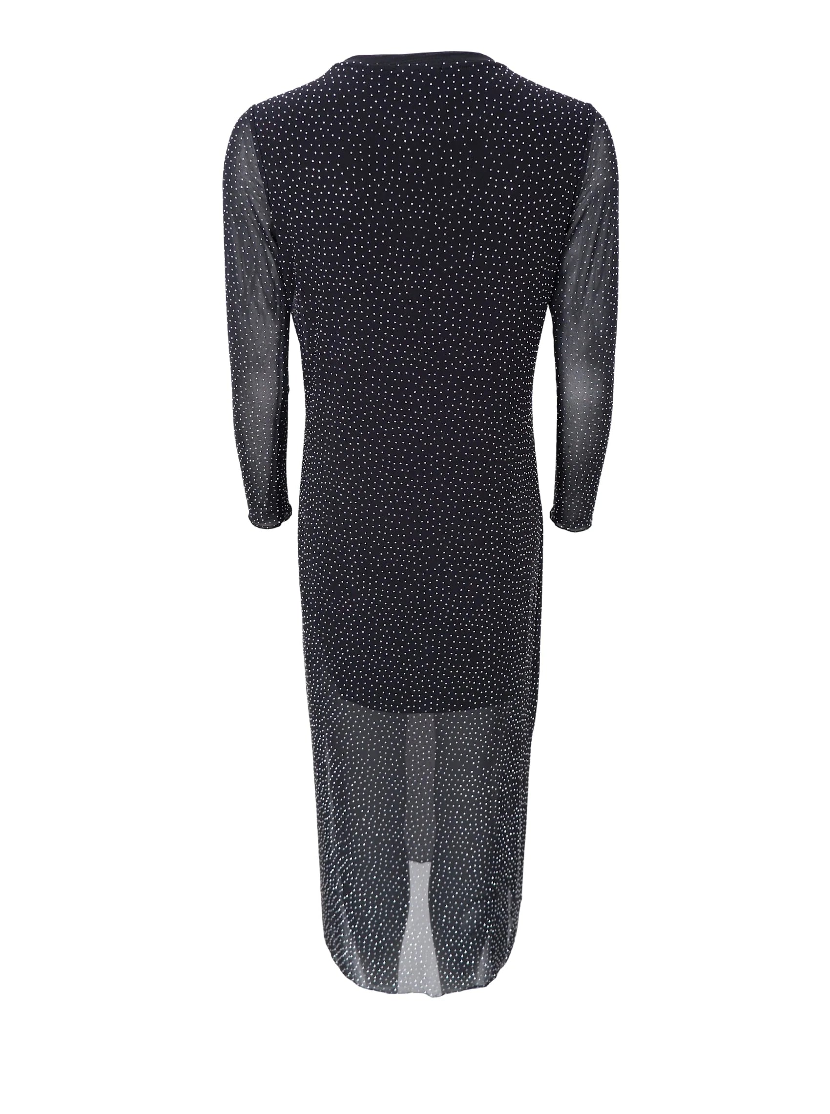 Elegant mesh dress with small glittery details. The dress has long sleeves, a round neck and a figure-hugging fit with draping at the side that gives a flattering fall. The light, transparent quality makes it ideal for festive occasions, where it can be styled with a slip or top and skirt underneath.