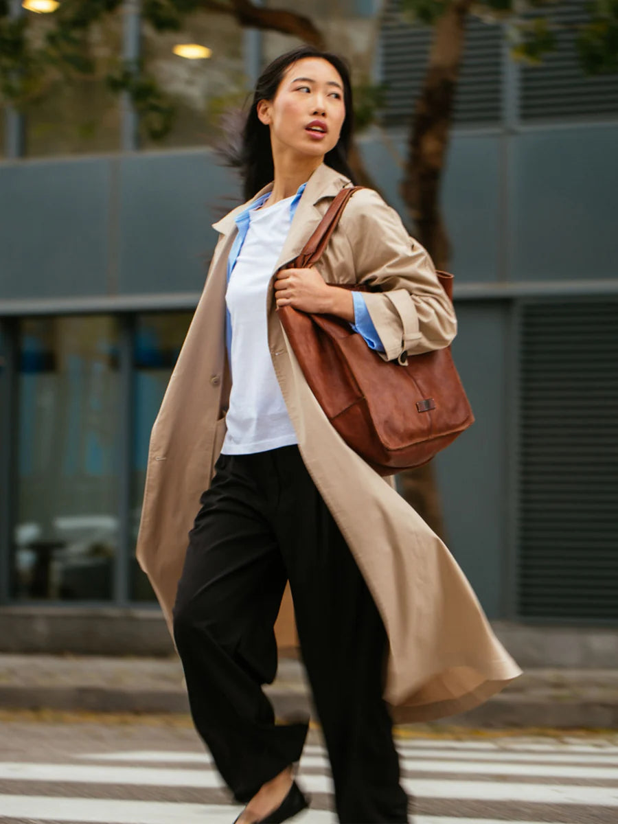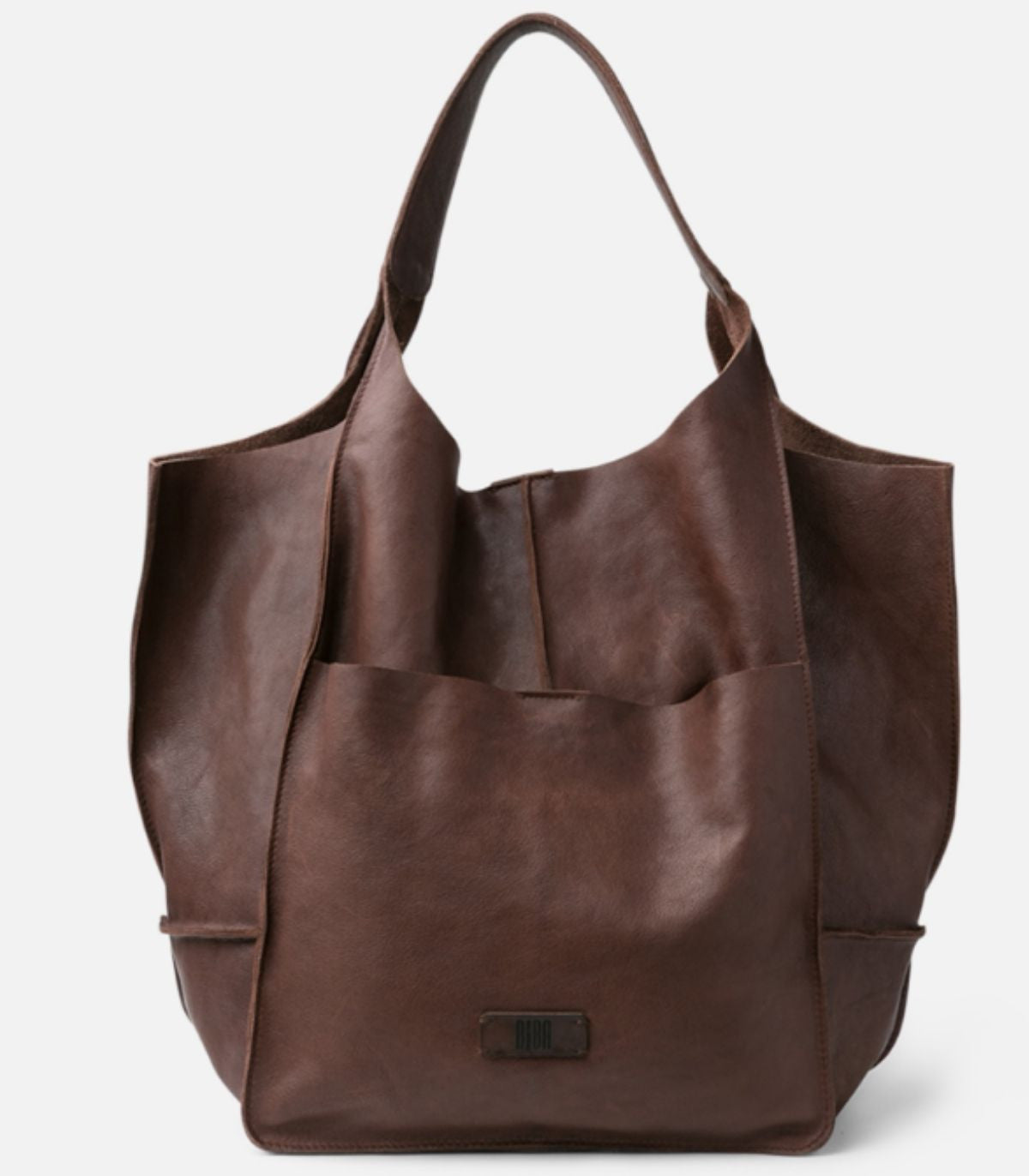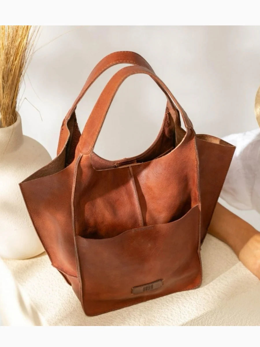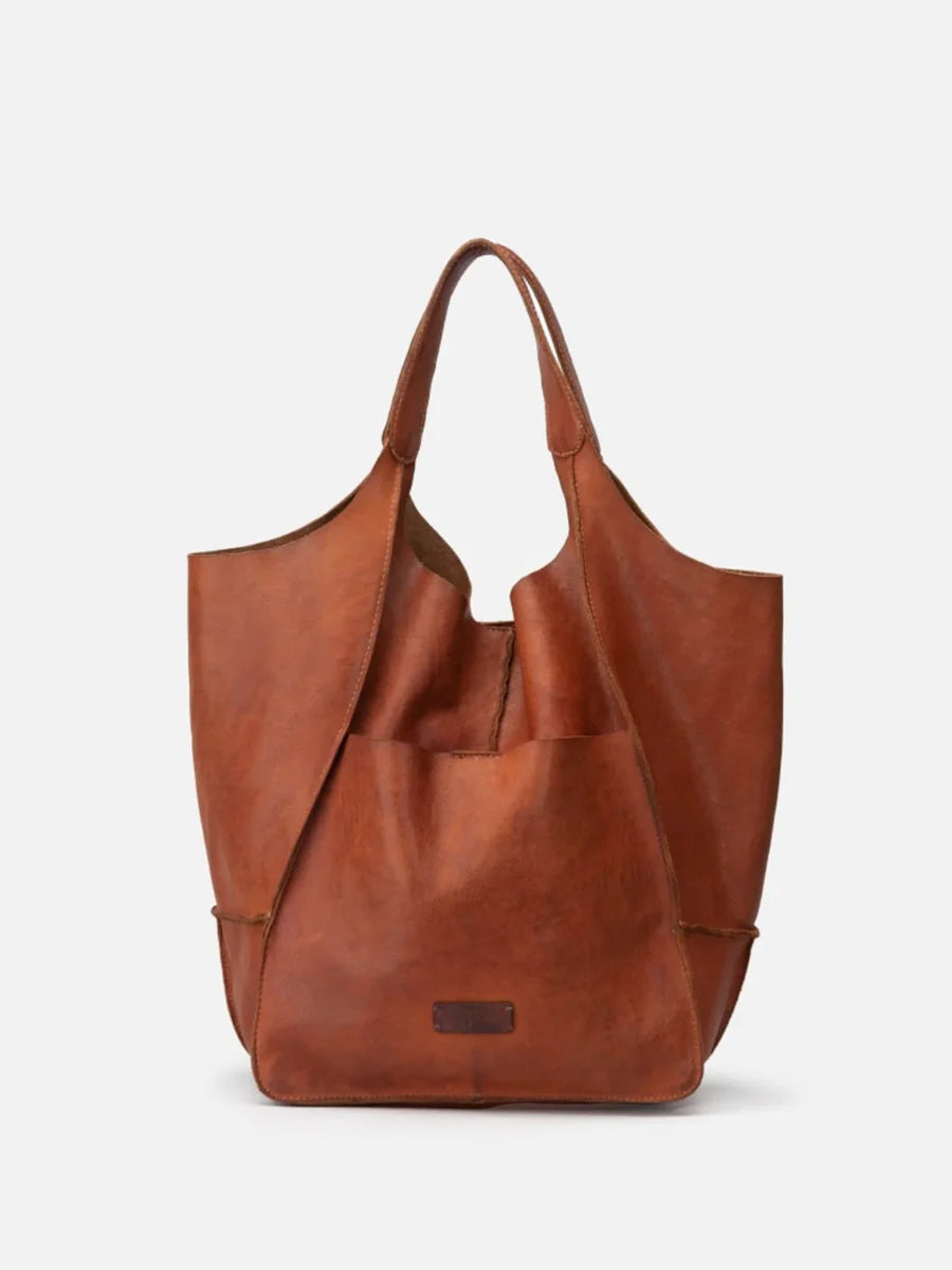 Washed and vegetable-tanned cowhide leather shopper bag.