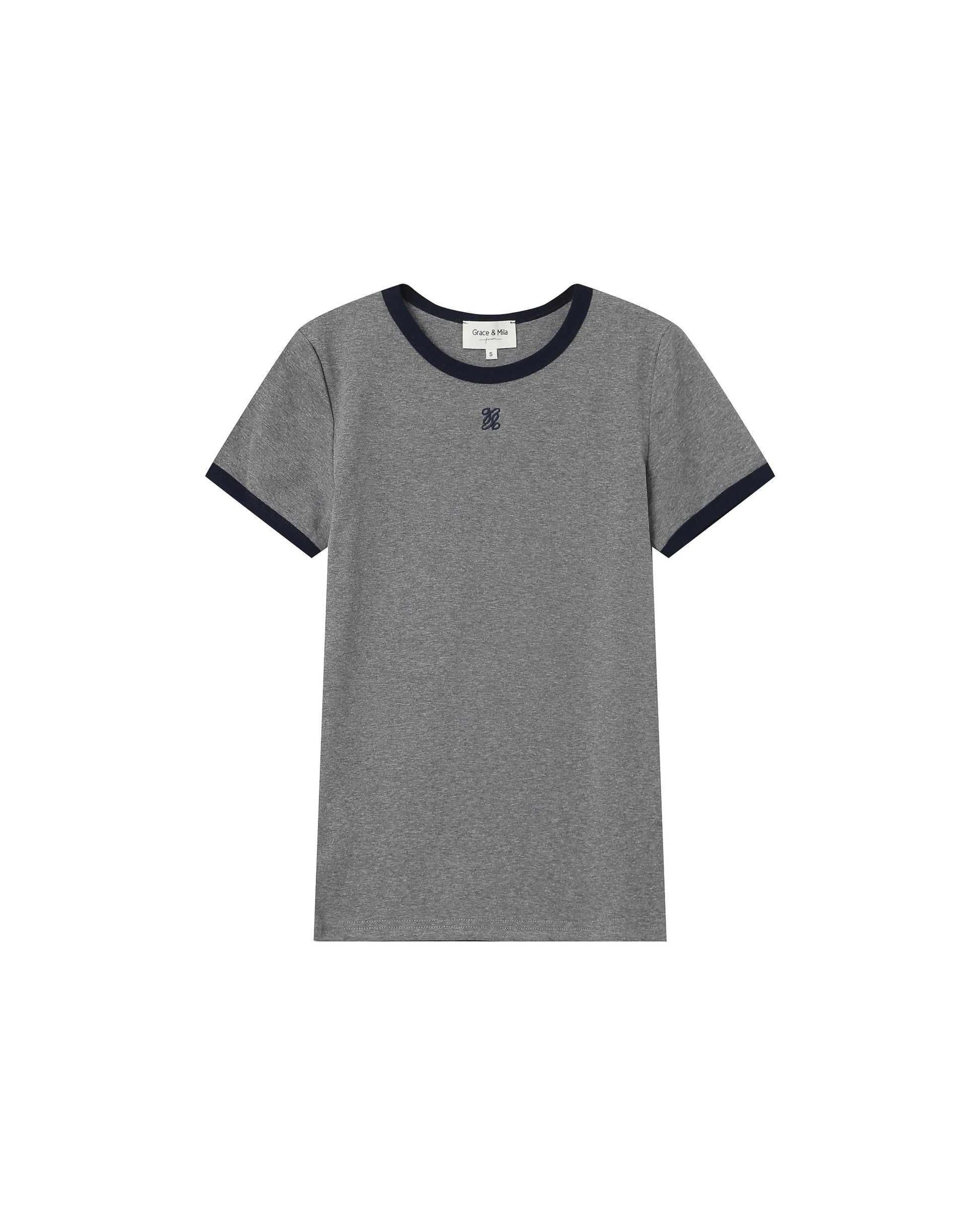 The SANY short-sleeved t-shirt , with its retro and sporty inspiration, features the G&M monogram embroidered on the front for an exclusive touch. Made from soft cotton jersey, the piece is highlighted by colorful contrast trims at the neckline and sleeves. The fitted cut of the SANY short-sleeved t-shirt enhances the curves while creating a relaxed silhouette.