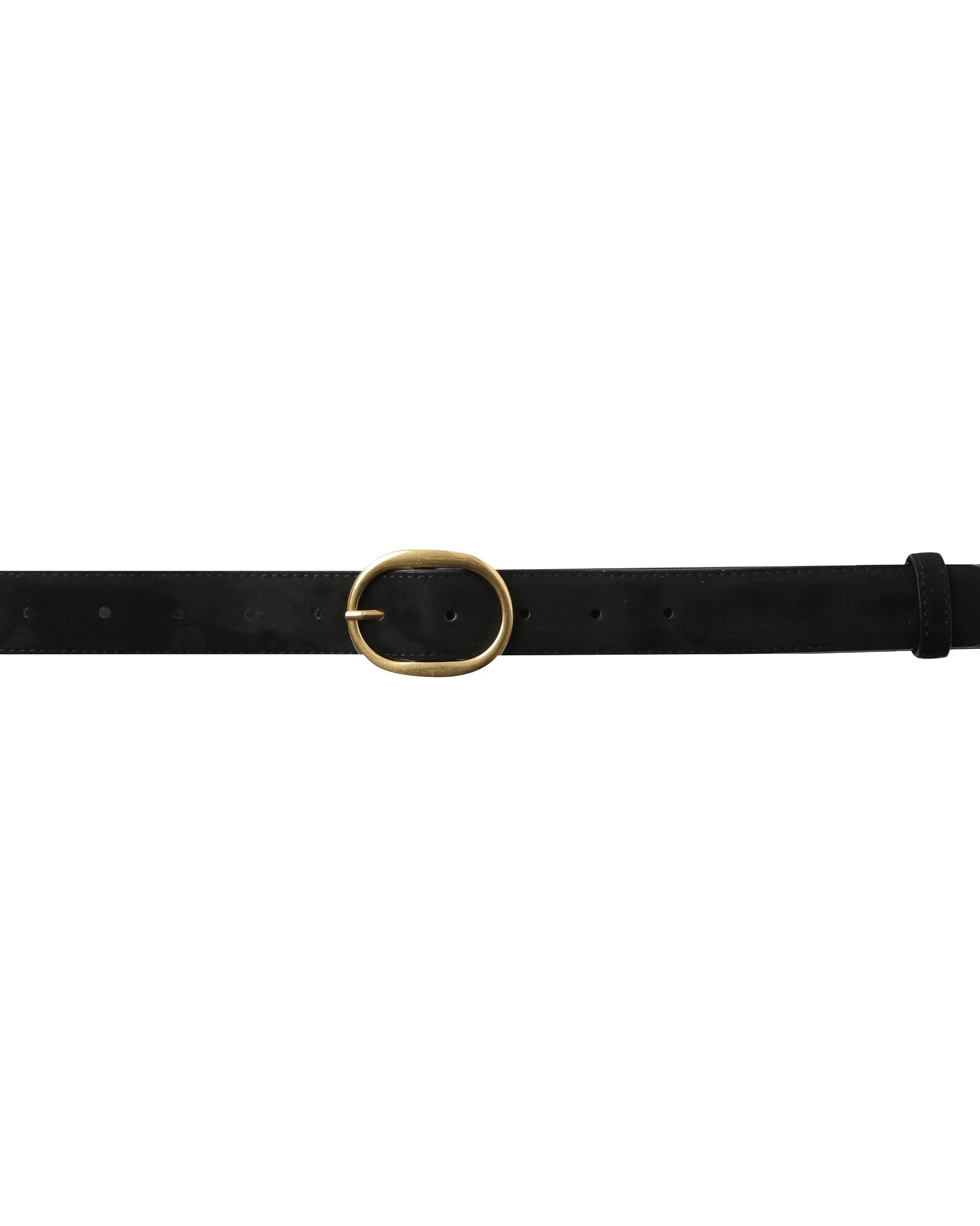 Faux suede belt with a gold buckle.