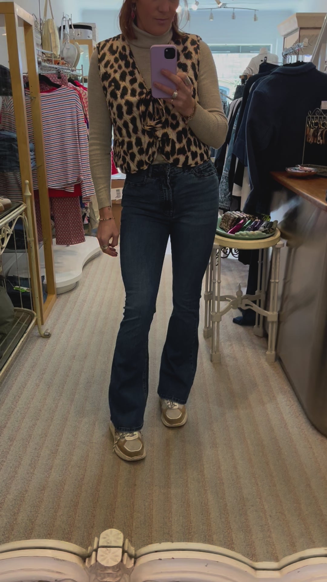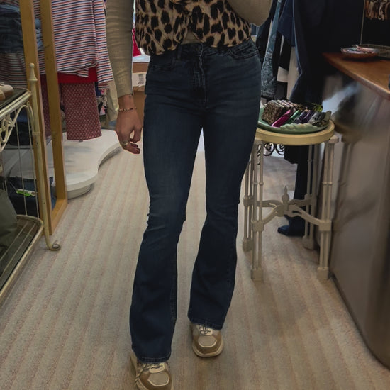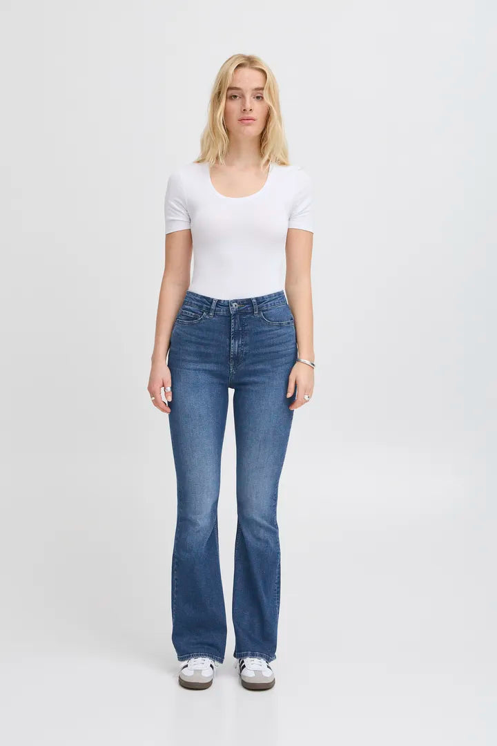 ICHI Wiggy Flared High Waist Jeans - Dark Blue