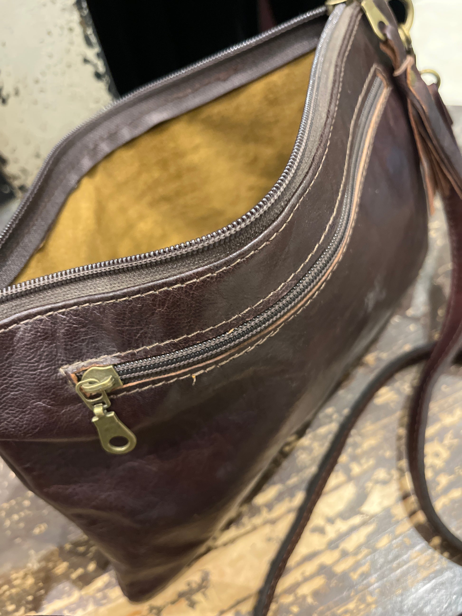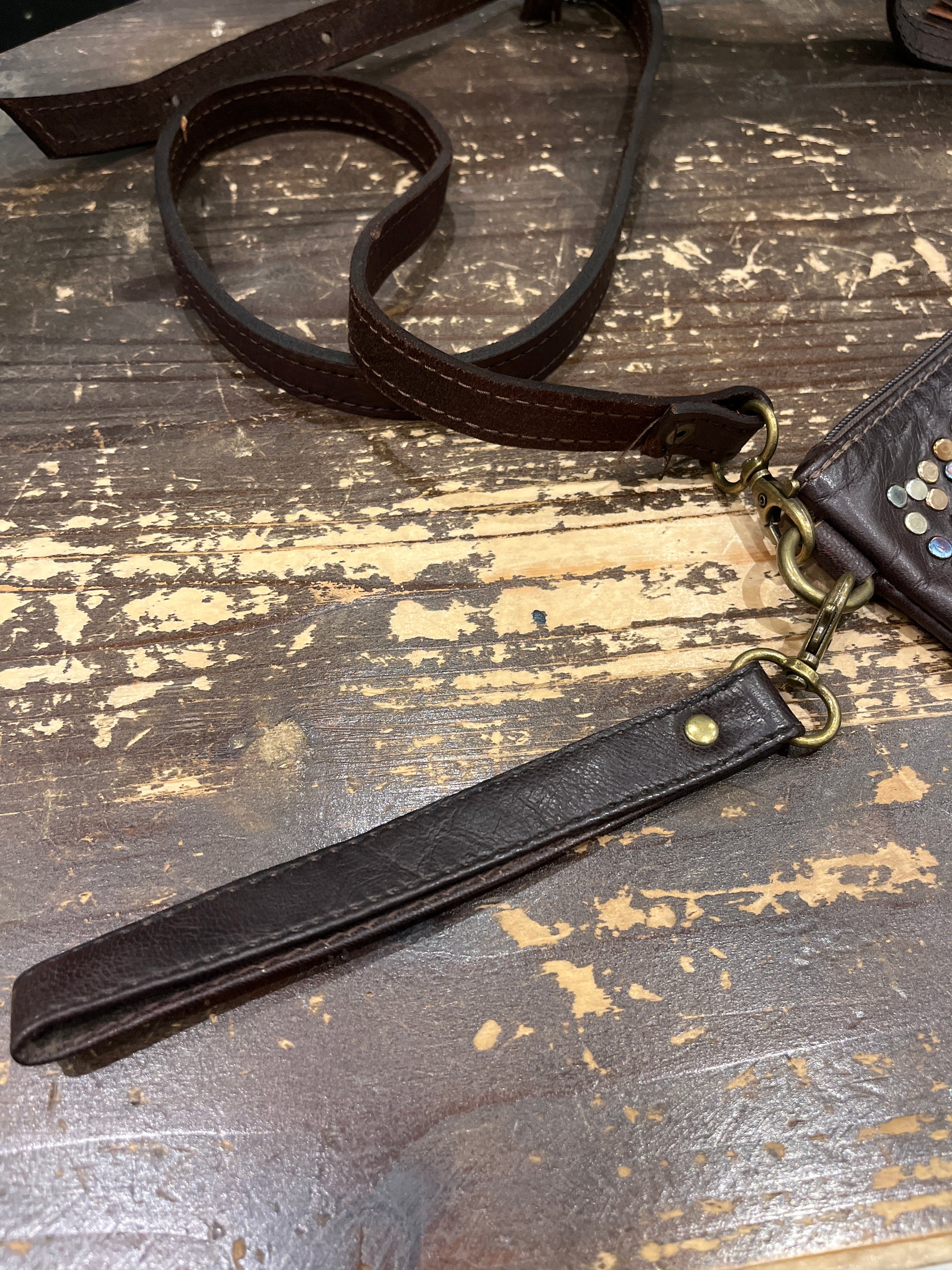 Comes with detachable long leather strap and a shorter leather wrist strap,