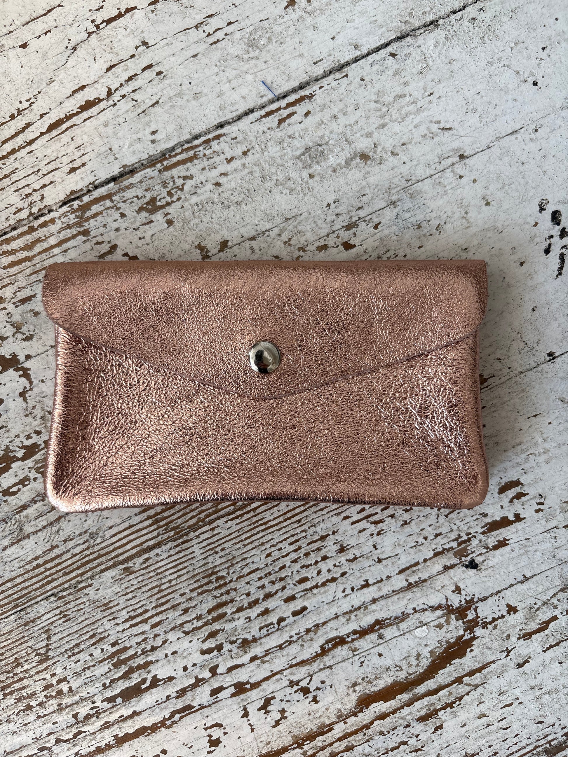 Soft envelope style leather purse. Two enclosures one with zip inside side .