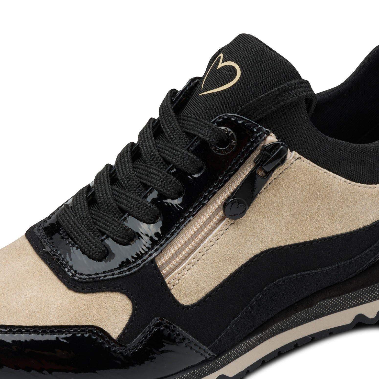 MT Beige & Black Patent Trainers - Black Comb