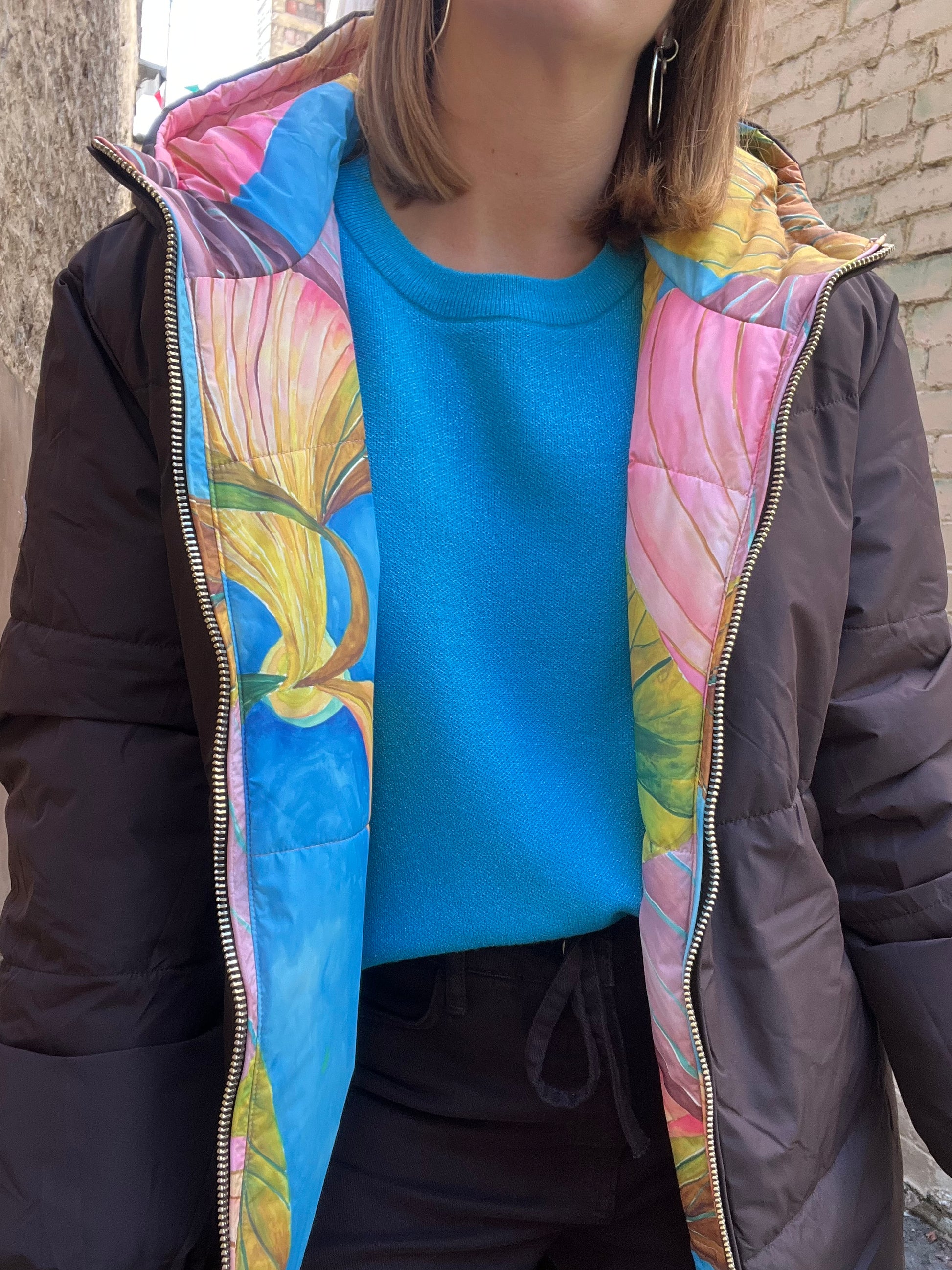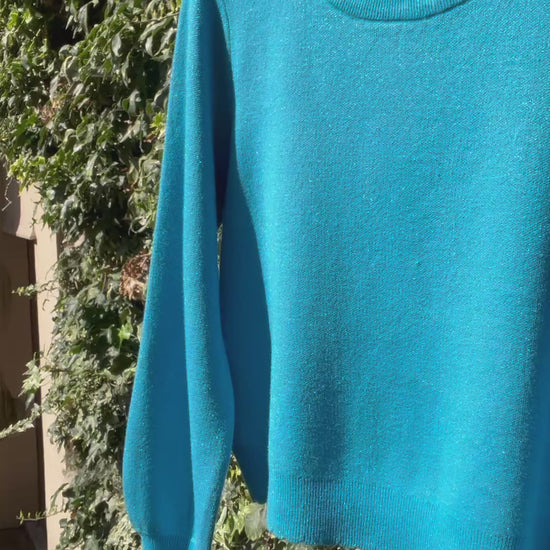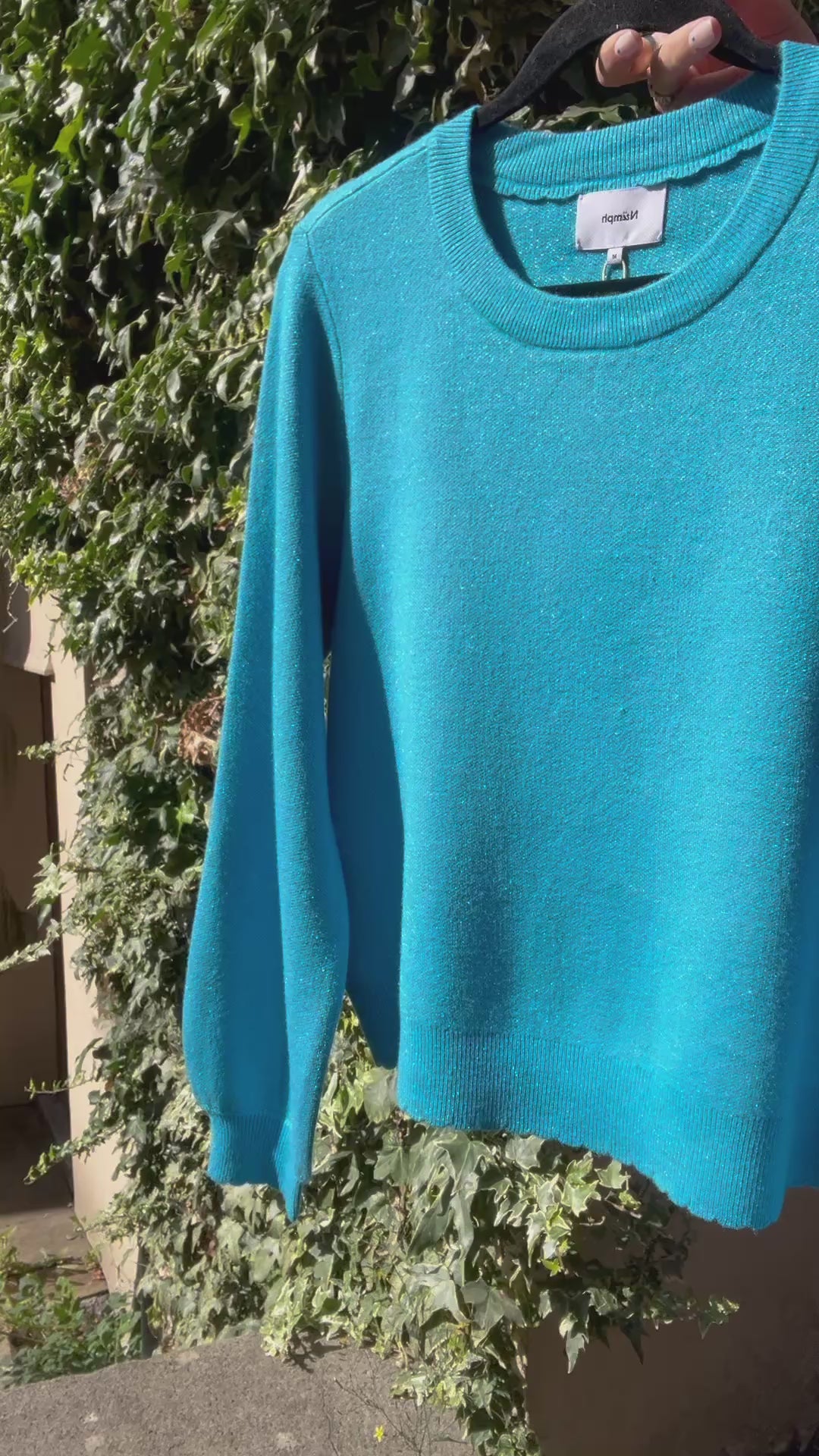 This medium-weight jumper with a touch of metallic yarn adds a pop of colour and femineity to your outfit.